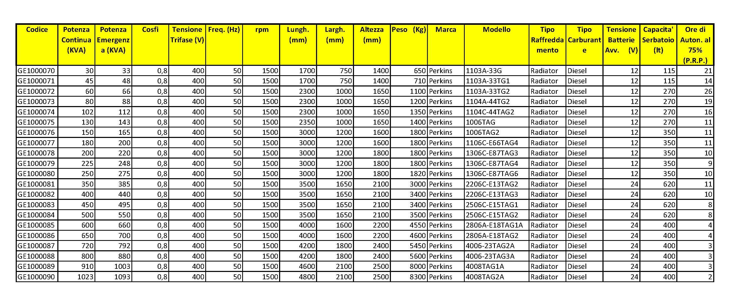 GRUPPI ELETTROGENI SERIE OPEN SKID - MOTORIZZATI PERKINS