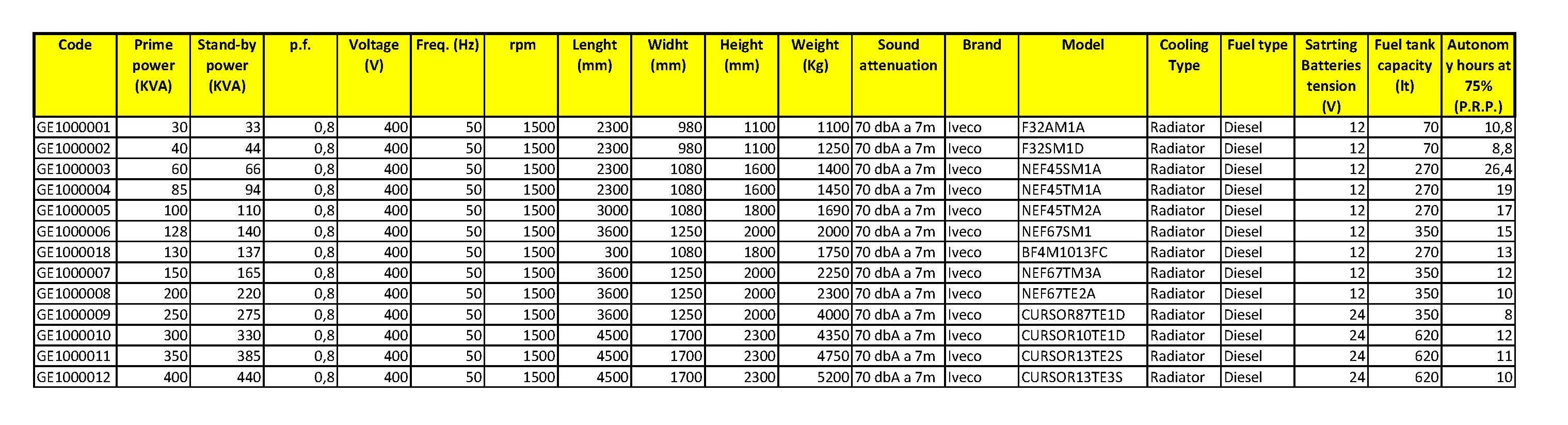 The generators are always equipped as standard with:
