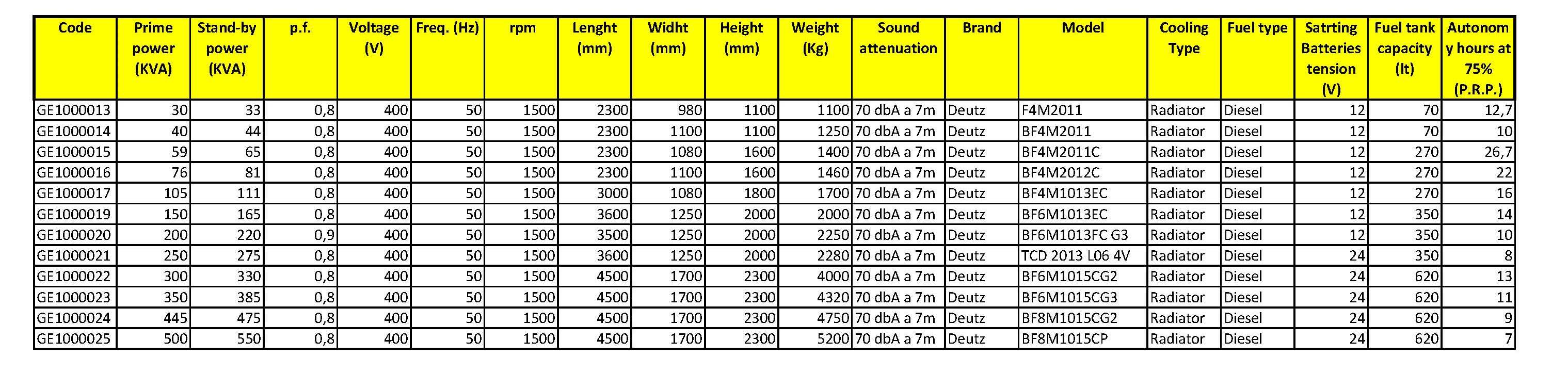The generators are always equipped as standard with: