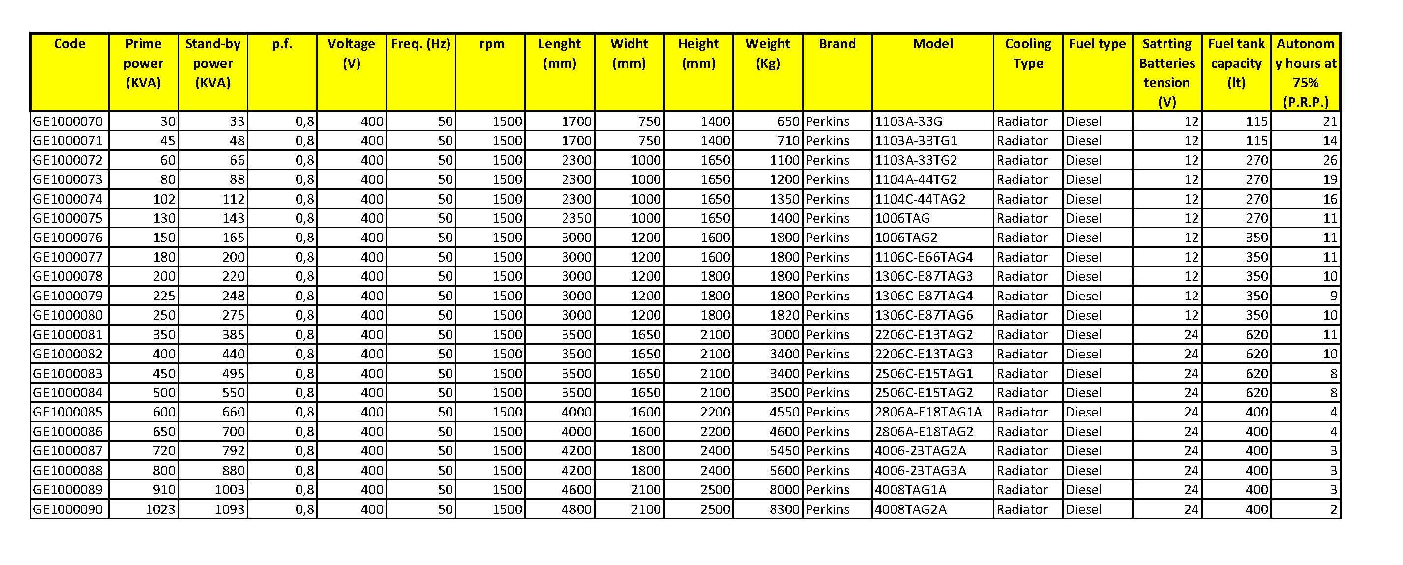 The generators are always equipped as standard with: